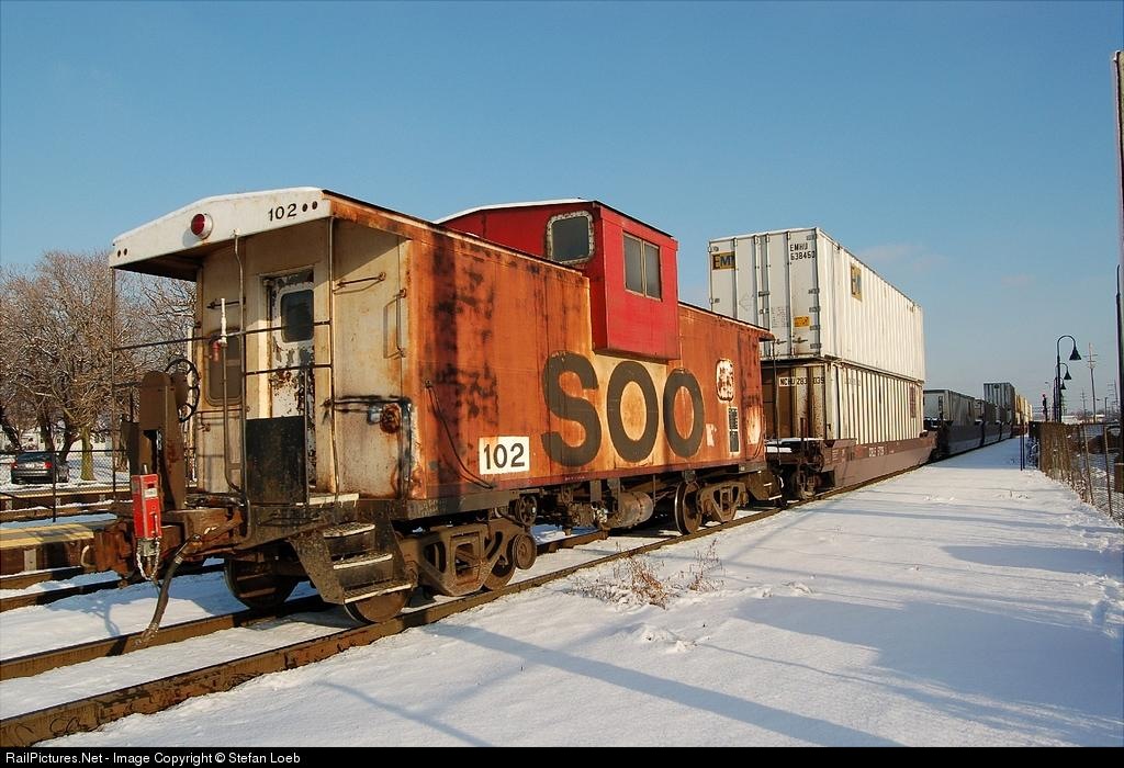 RailPictures.Net Photo: SOO 102 Soo Line Wide Vision Caboose at Franklin Park, Illinois by Stefan Loeb