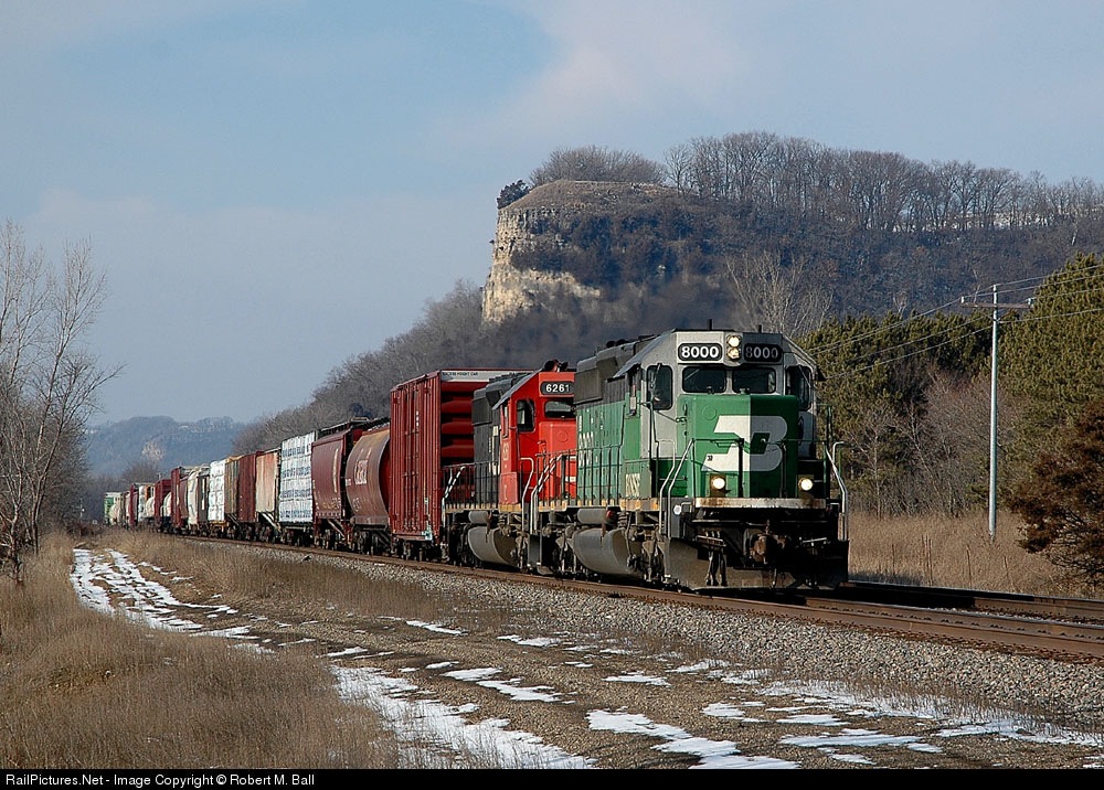 RailPictures.Net Photo: BNSF 8000 BNSF Railway EMD SD40-2 at Diamond Bluff, Wisconsin by Robert M. Ball