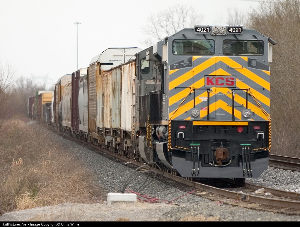 KCS 4021, a new SD70ACe, and KCS 4579, AC4400CW, lead the SHNS waiting in the hole at Bovay. In the middle of the consist is KCS 4022, another SD70ACe, running in DPU mode. One of the few times a DPU has been run on the Vicksburg Sub.