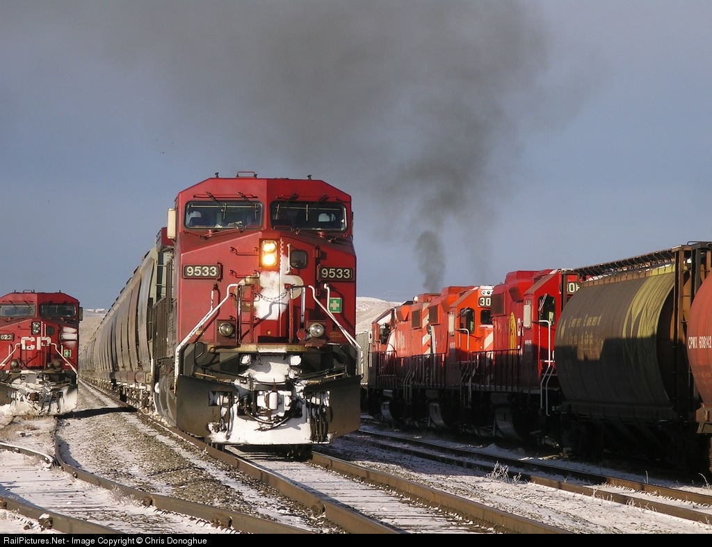 672's crew sets off power for a west bound and awaits a transfer (cp 3041) to clear the east switch at Keith before completing the final 9 mile stretch to Alyth Yard
