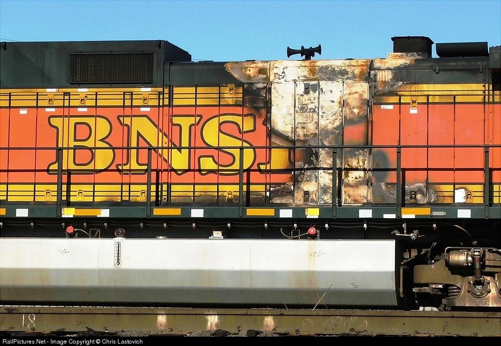 BNSF 5308 prepares to depart Clyde with some extreme burn damage...quality GE product for ya.