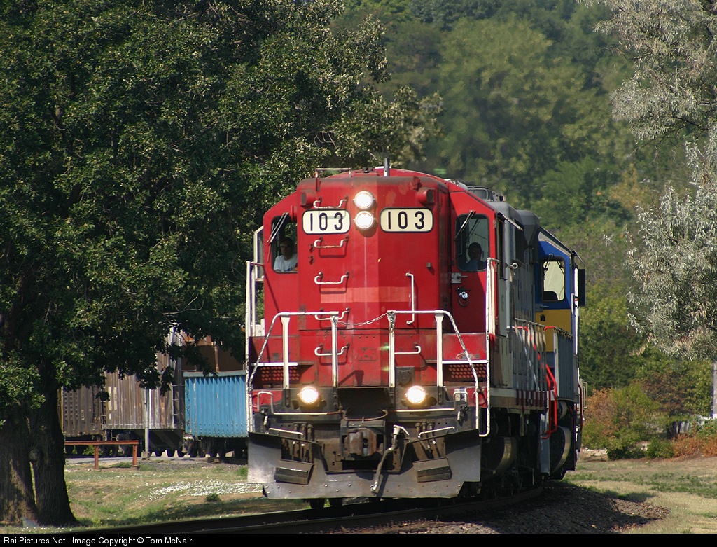 ICE GP-9 #103 heads up the #914 local as it works north to Clinton, Iowa.