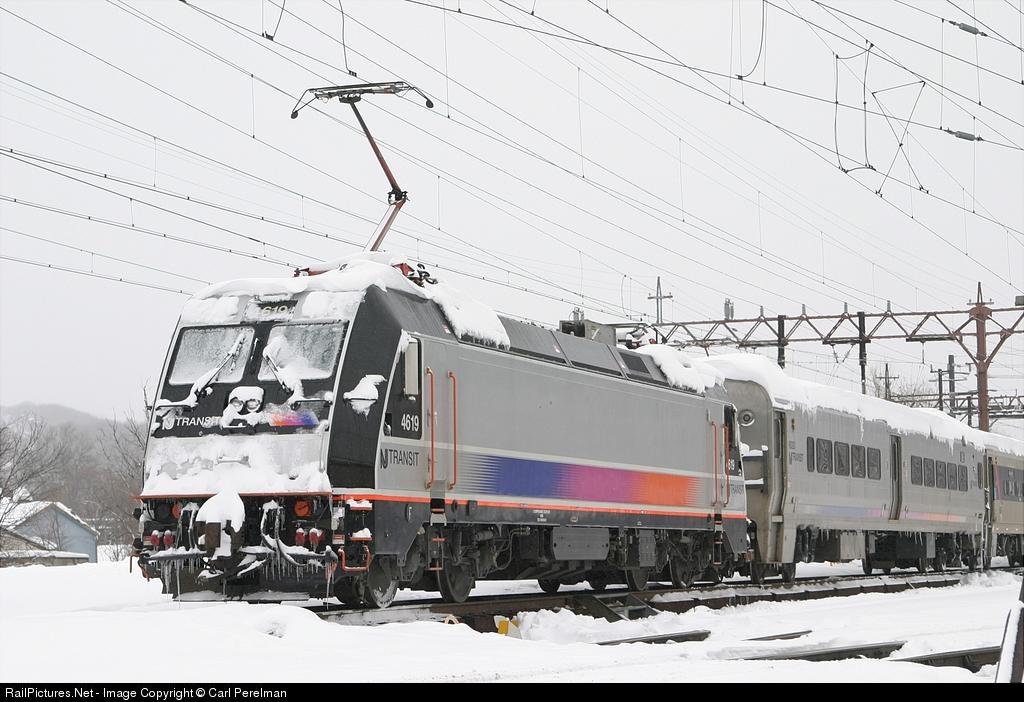 | The Blizzard of 2006 dumped enormus snow totals in the New York/New Jersey Metropolitan Area. NJ Transit experienced few delays during the storm. This ALP46 had charged through the snow, with a blanket of the white stuff apparent on the front nose. |