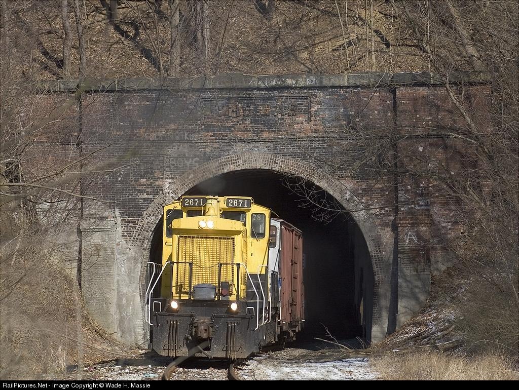 NREX #2671 leads AVR 3 out of the dark confines of Thomas Tunnel.