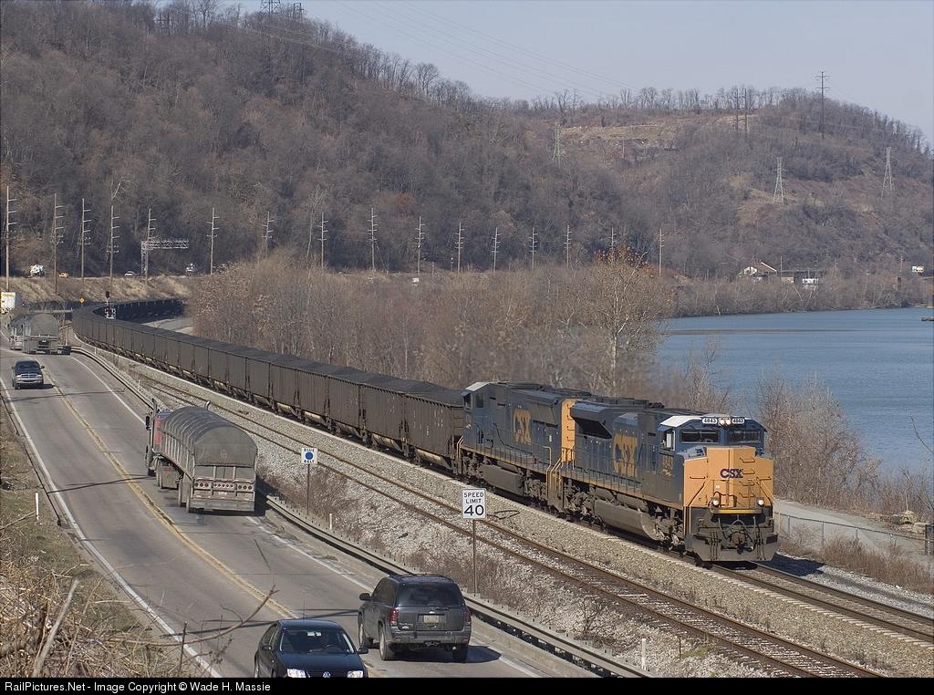 This section of the Monongahela valley features a bike trail, the CSX main, PA Route 837, and the NS Mon Line - all between the river and hillside! Here, 4843 works east, with a coal train that originated on the former C&O.