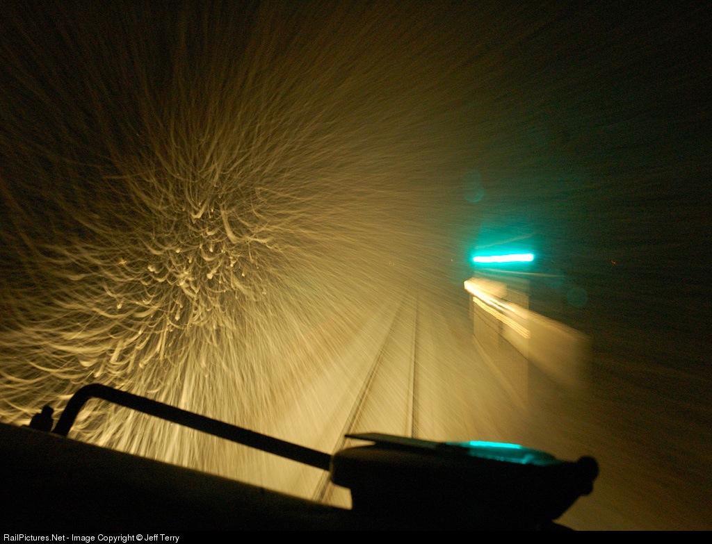 Running through a driving snowstorm just west of Paynesville, Minnesota.