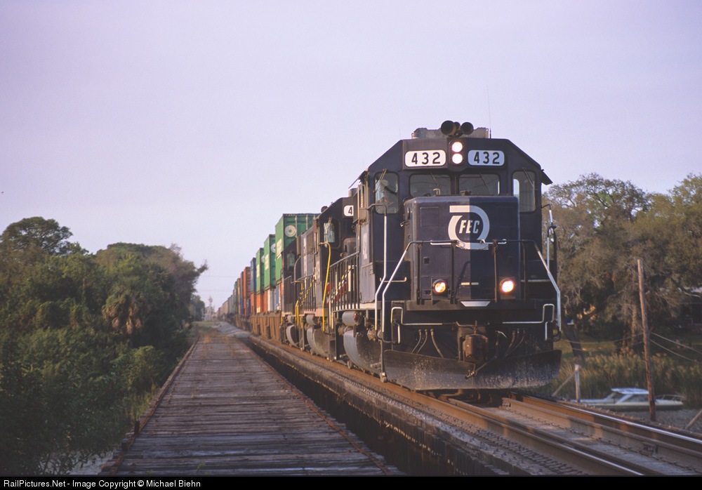 RailPictures.Net Photo: FEC 432 Florida East Coast Railroad (FEC) EMD GP40-2 at Eau Gallie, Florida by Michael Biehn