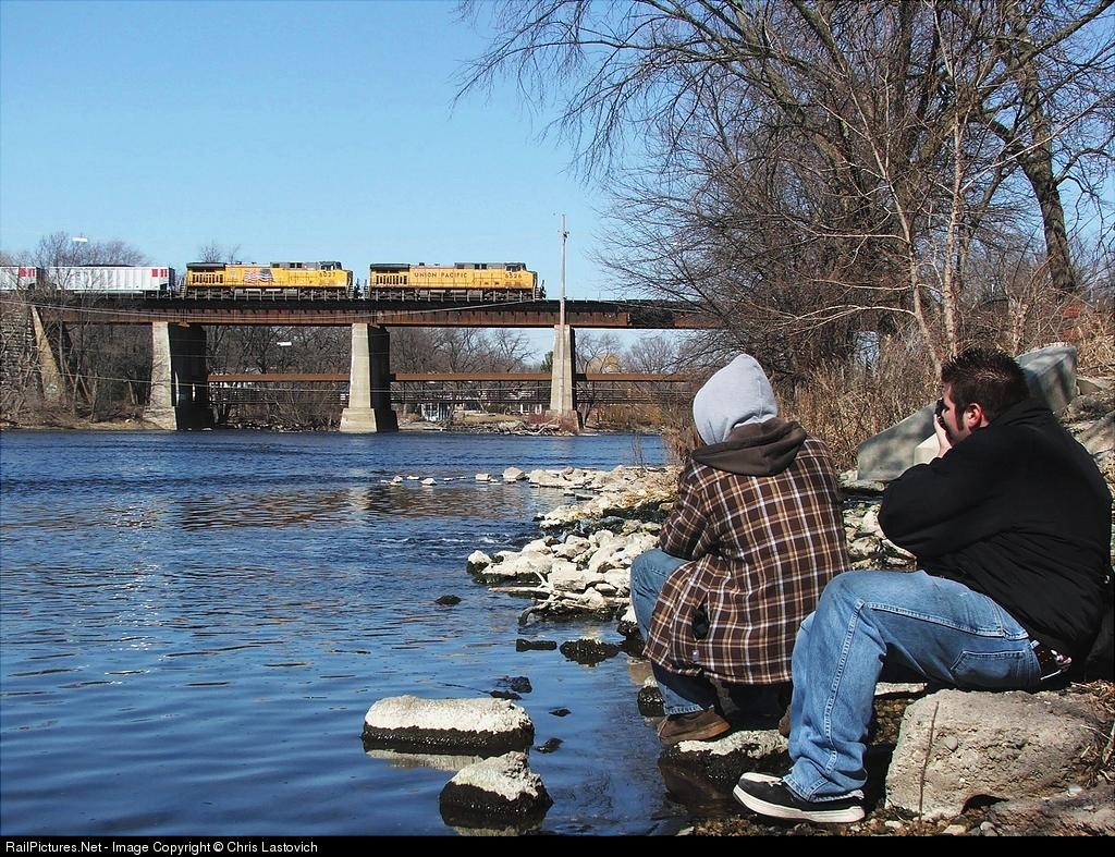 | Fellow railfans Ian Contreras and Matt Lastovich get the shot of a UP coal load over the scenic fox river bridge. Braving cold temps and nearly falling in the Fox River for a good shot, thats how we do it. |