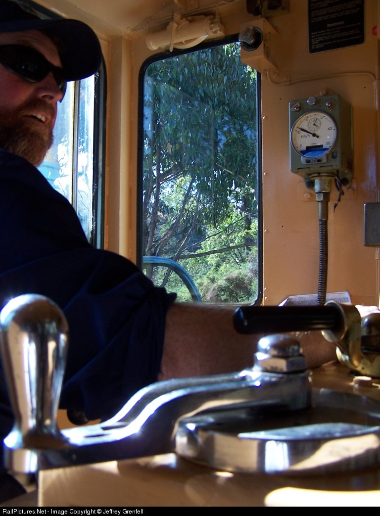 Inside the cab of 1002 as it makes its way through the bushland on the way to Don Junction. Note the speed - 11km/h.