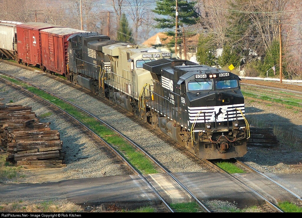 | Norfolk Southern 9364, 7524, and 8925 have just come over the Rockville bridge and are pulling their train into the west end of Enola yard. The second unit is an ES40DC. |