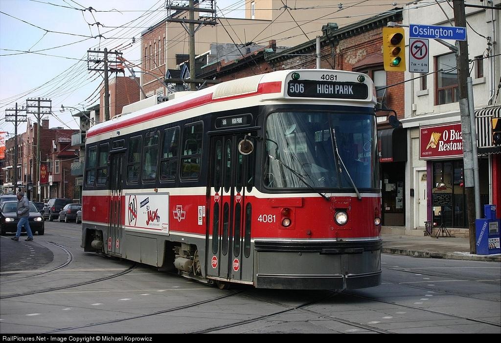 | CLRV #4081 strides past Ossington on the 506, enroute from High Park. Not many places in North America afford a chance to experiance Streetcar systems much like the past, such as Toronto's TTC which operates 24 hours a day. |