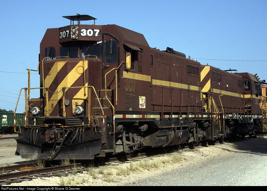 CF7 307 and sister 305 rest in BNSF's Brownwood yard. These units are still lettered for their previous owner, the Red River Valley & Western.