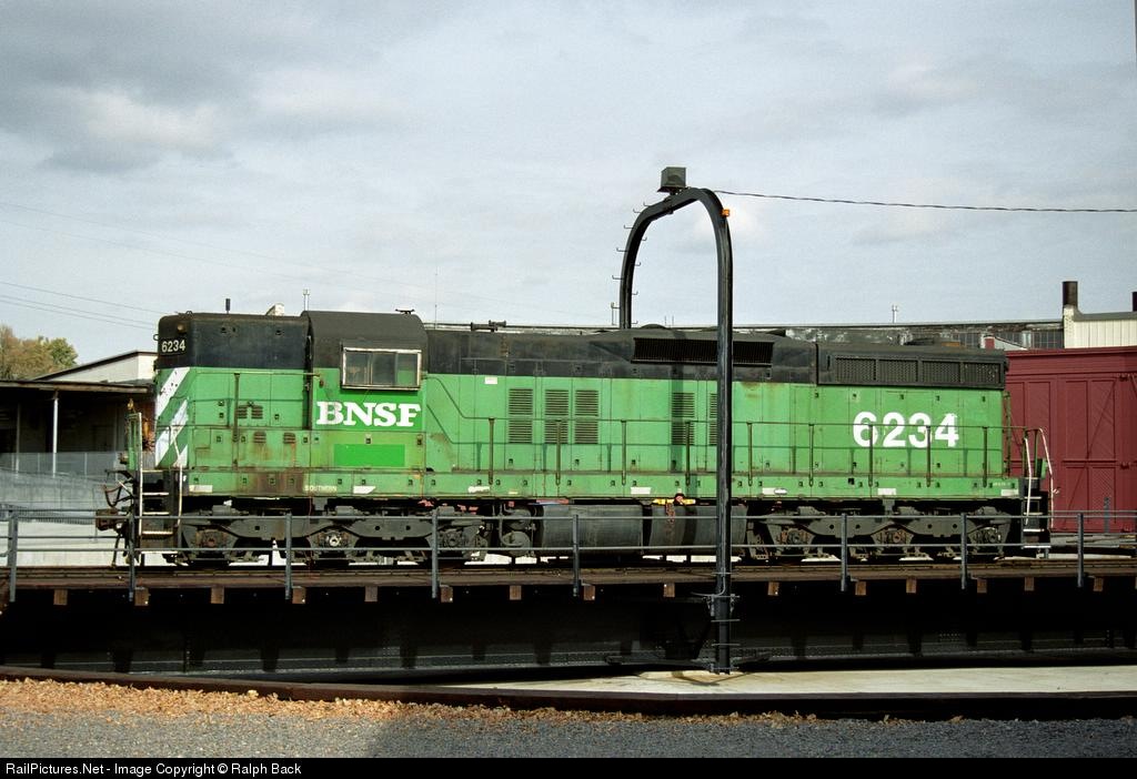 | BNSF donated SD9 6234 to Minnesota Transportation Museum in August 2003, and delivered 6234 to MTM's Jackson St. Roundhouse on October 16th. The BNSF patches were removed two days later to reveal its BN markings. BN 6234 was originally C&S 839. |