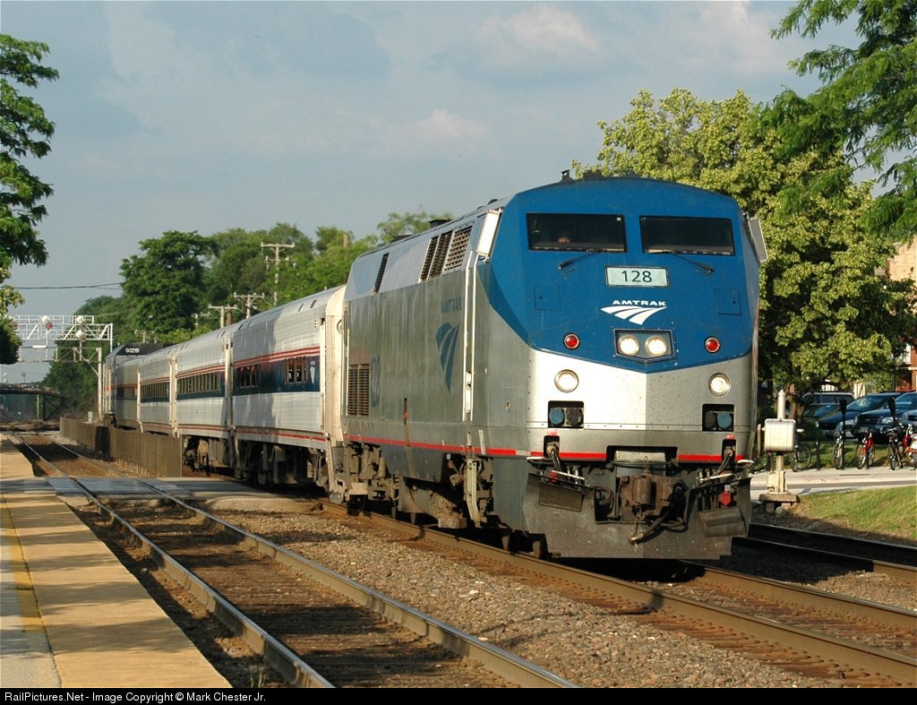 RailPictures.Net Photo: AMTK 128 Amtrak GE P42DC at Hinsdale, Illinois by Mark Chester Jr.