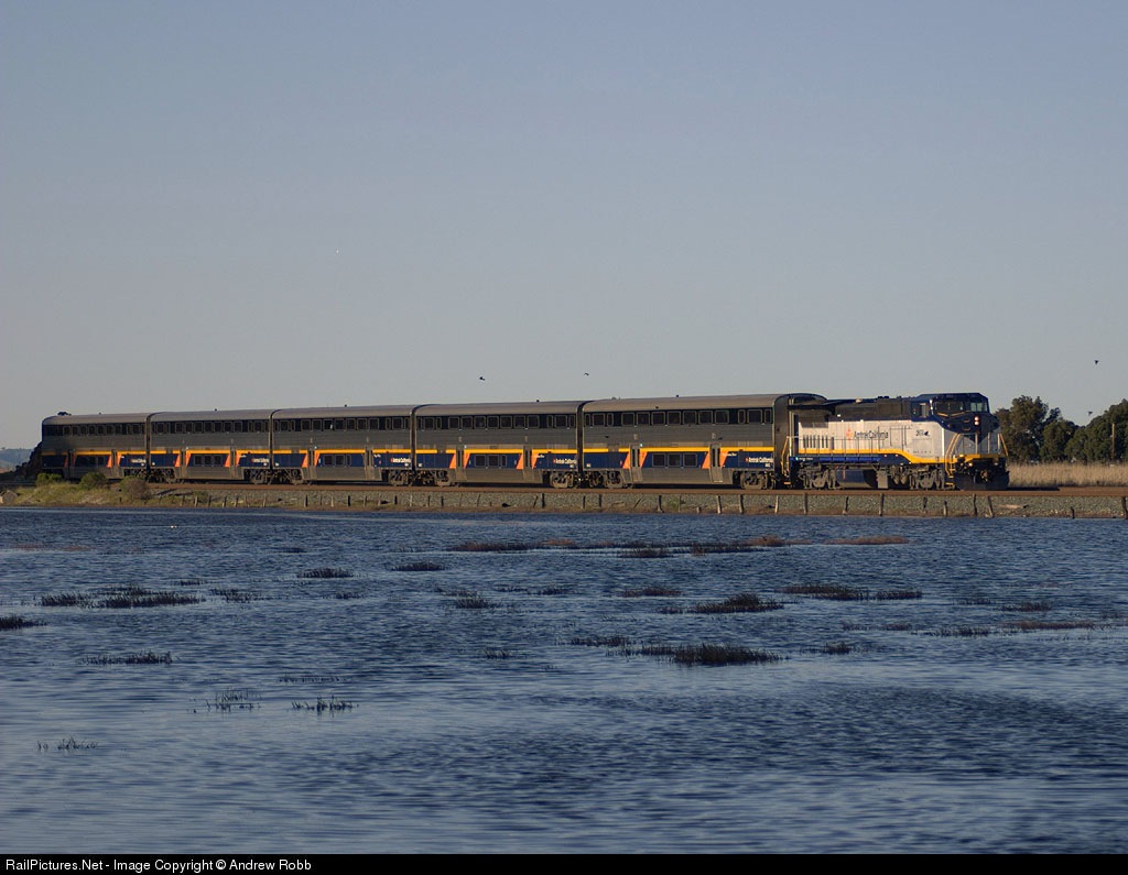 1 of 2 Amtrak California's only P32's races through the flooded benicia marshlands