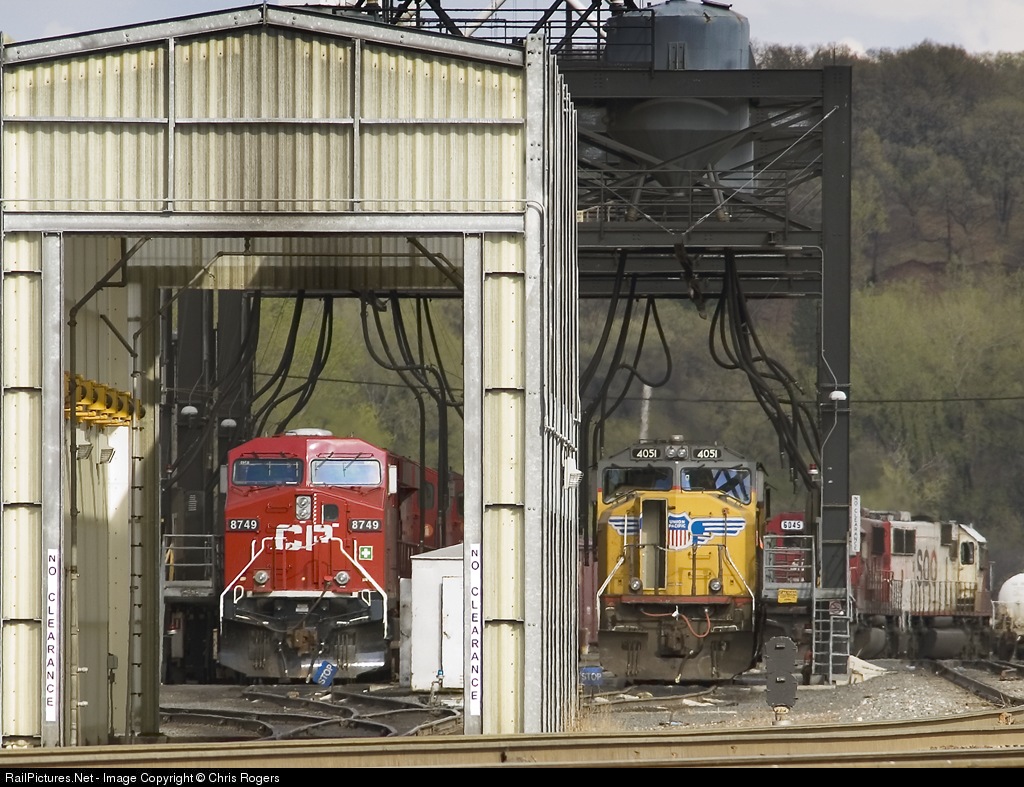 UP 4051 sits in the service bay in CP's Pigs Eye yard in St Paul beside the CP 8749 and amongst quite a bit of other CP power.