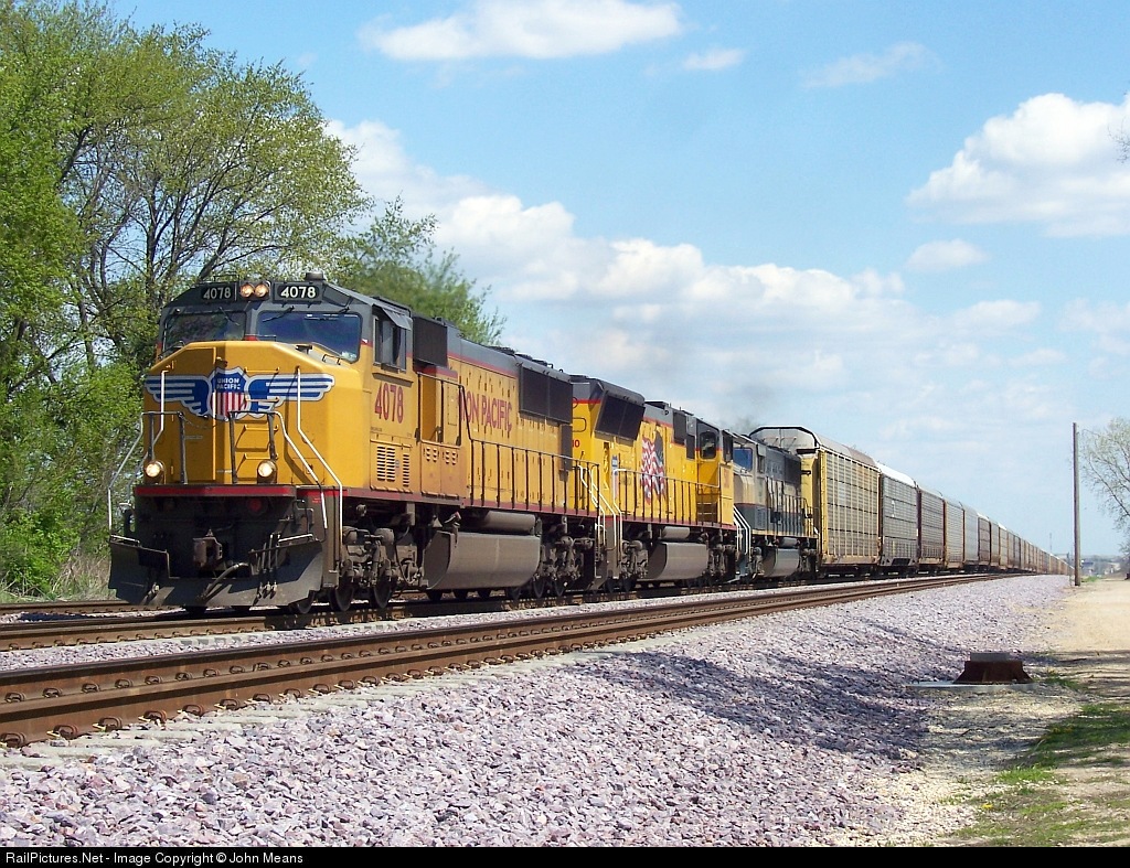 UP 4078 slowly leads this auto train into LaFox.