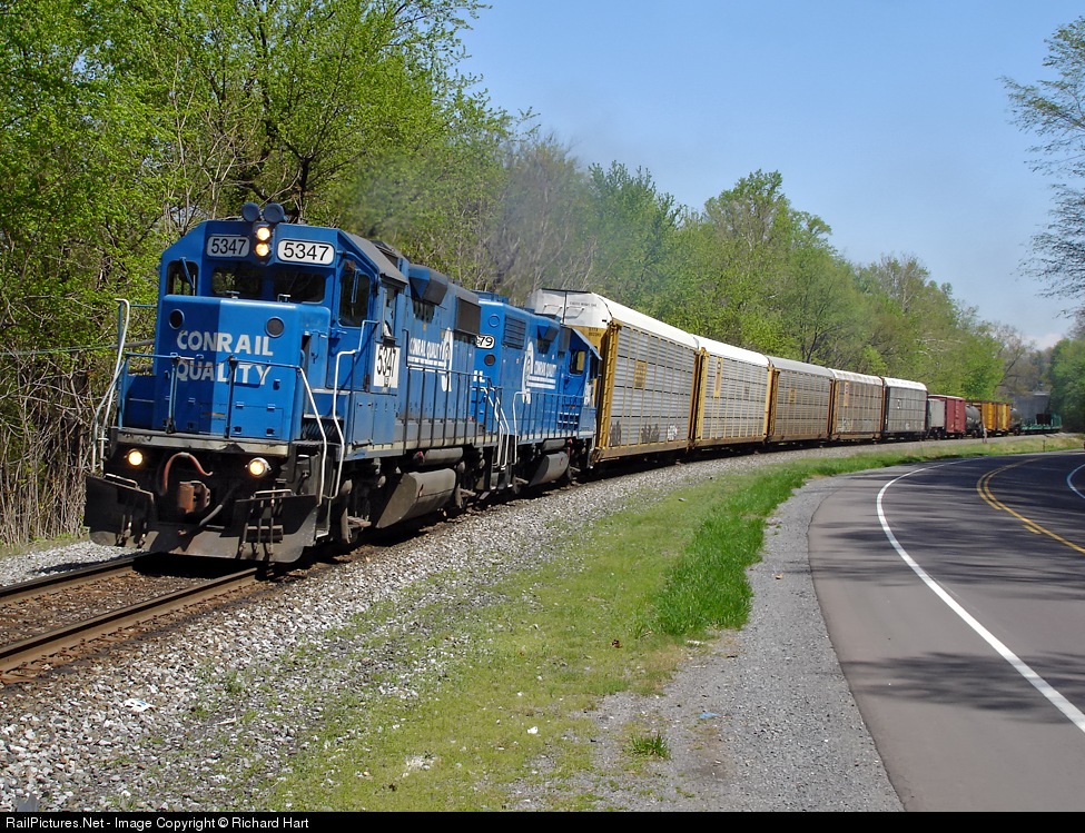 Pouring it on, leaving town. 5347 built as Conrail 8187 in May 78.
