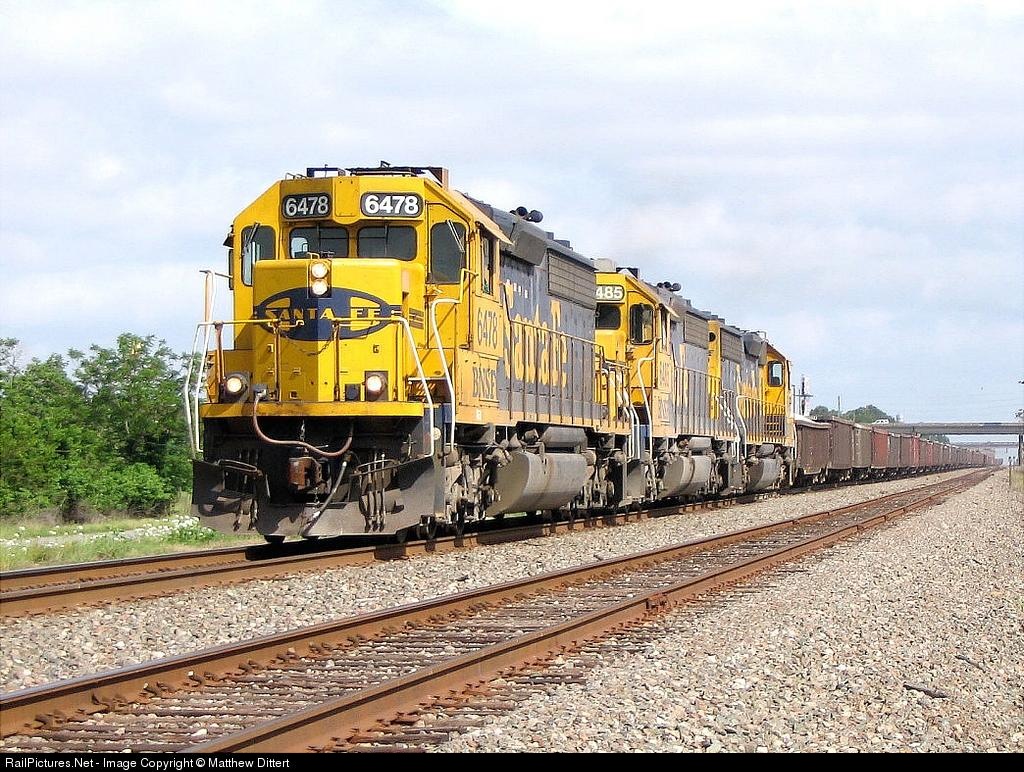 | BNSF rock loads from Brownsville accelerate out of Sealy with 3 SD45-2u's (6478, 6485, 6469) leading the way to Pearland. Absolutely wonderful!!! |