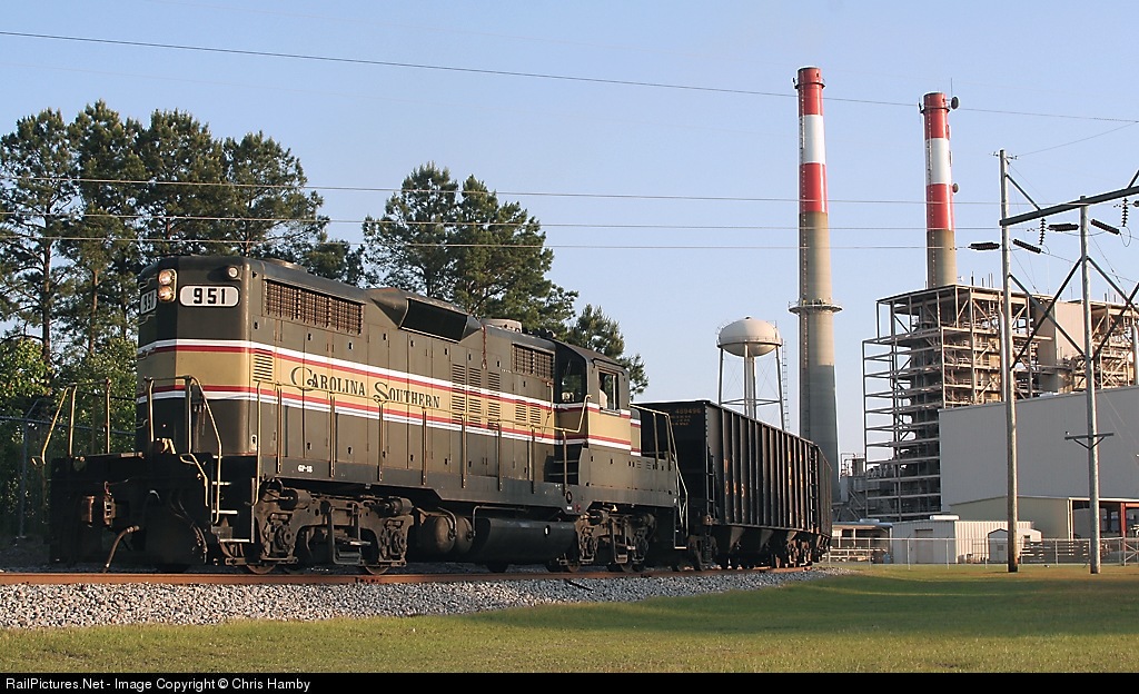 Carolina Southern GP18 #951 pulls empty coal cars out of the Grainger Steam Generating Plant on a nice summer afternoon.