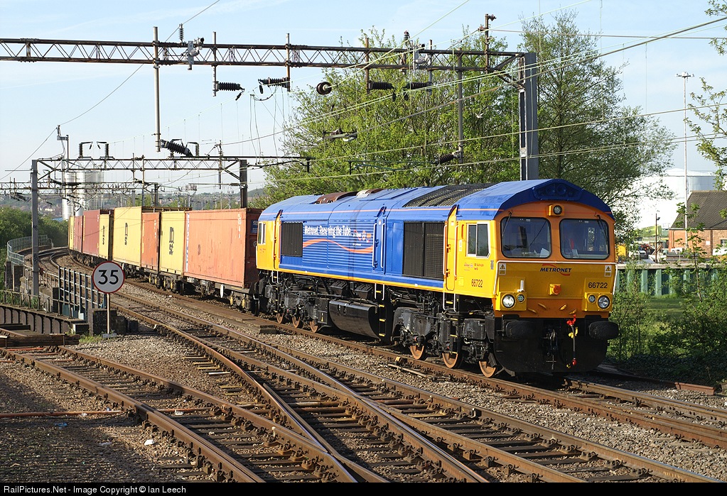 66722,in GBRf Metronet livery, on a Felixstowe to Hams Hall(Birmingham) liner train.