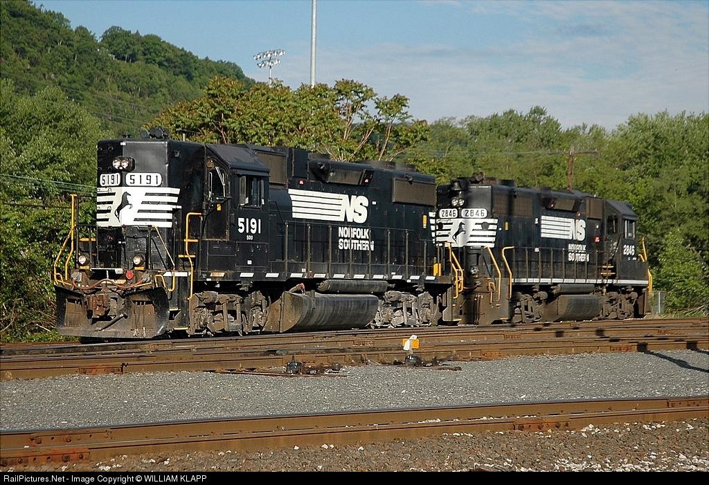 southbound at Northumberland , dropping off NS 2846 GP38AC . leaving yard light with NS 5191 Only