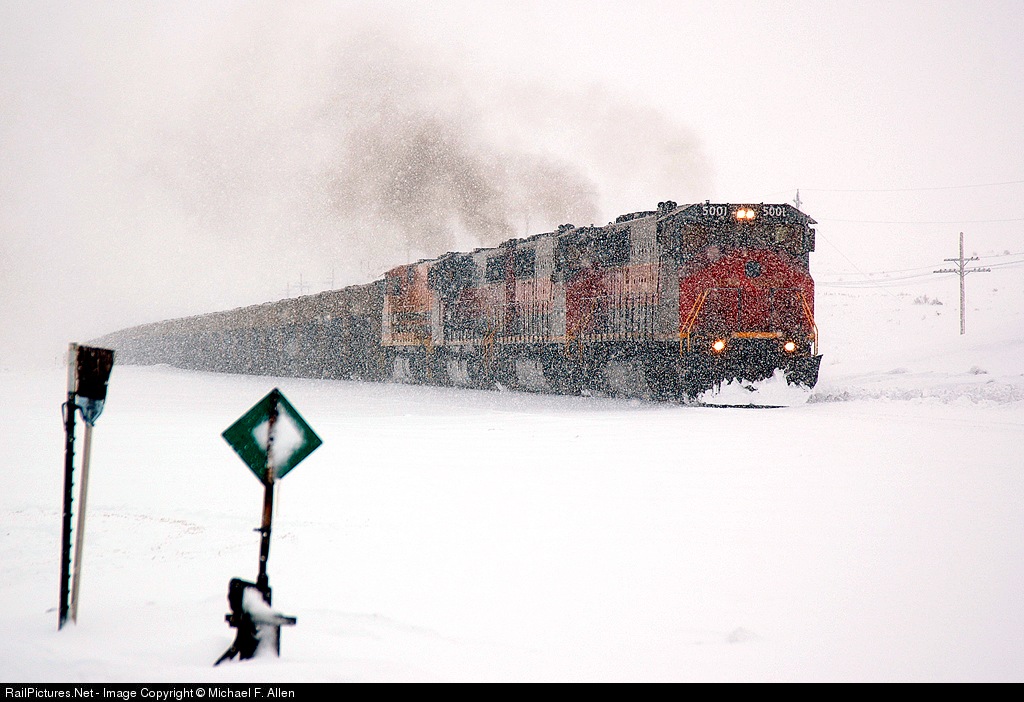 It's nearly a white out as Utah Railway 5001 leads a coal train past the buried yard tracks at Soldier Summit.