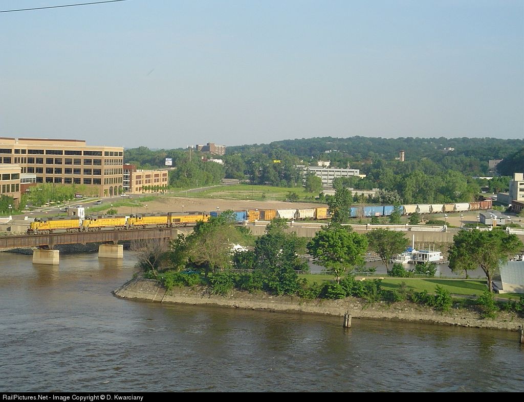 UP crawls across the Roberts Street Bridge with 70 cars for Minneapolis.
