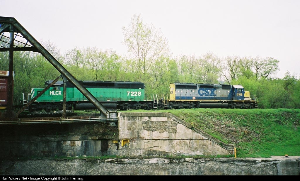 CSXT 8108 leads a Helm Leasing Company SD40-2 west over the Erie Canal.