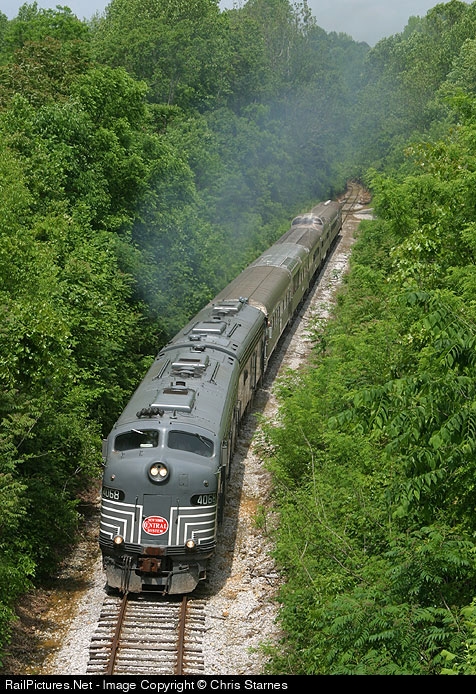 | NYC 4068 and 4080 lead the eastbound Tennessee Wildflower Special on the Nashville & Eastern at Silver Point, TN as it works toward Cookeville. |