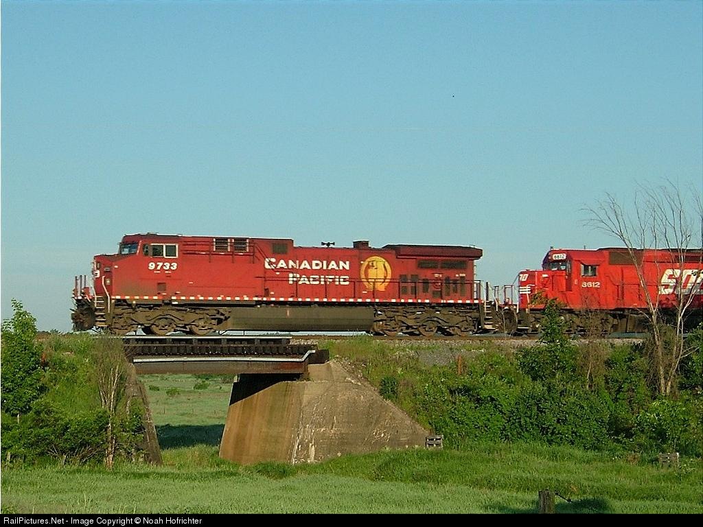 The first of two grain trains following each other runs down through Wisconsin. This one had far more interesting power though (CP AC4400, SOO SD40-2, and CP SD40-2), and are shown here crossing over a path between cow pastures. Yep, we're in WI alright.