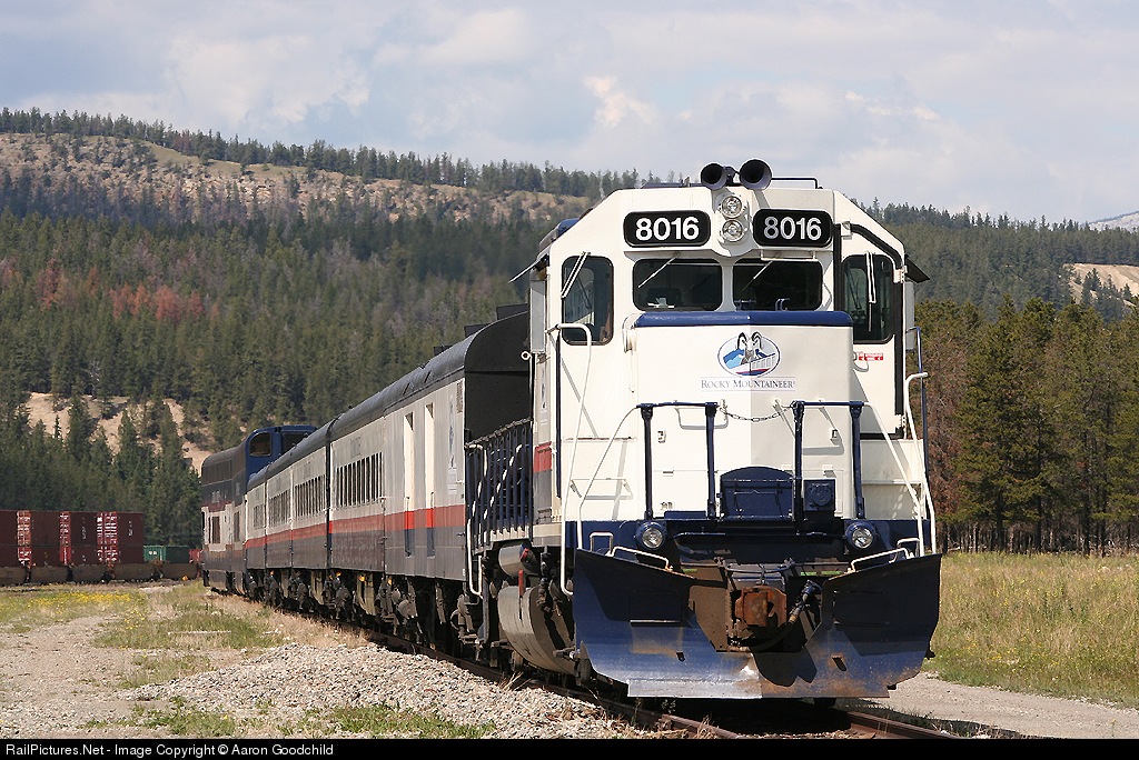 RailPictures.Net Photo: RMRX 8016 Rocky Mountaineer Rail Tous EMD GP40 at Jasper, Alberta, Canada by Aaron Goodchild