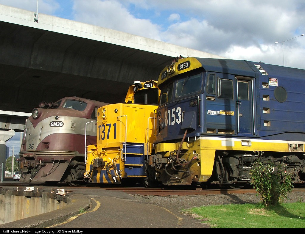 | Pac Nat 8153, Pac Nat T371, and restored GM36 on the Standard Gauge turntable at Sth Dynon Loco Depot. Click Here to view more Aussie Photos |