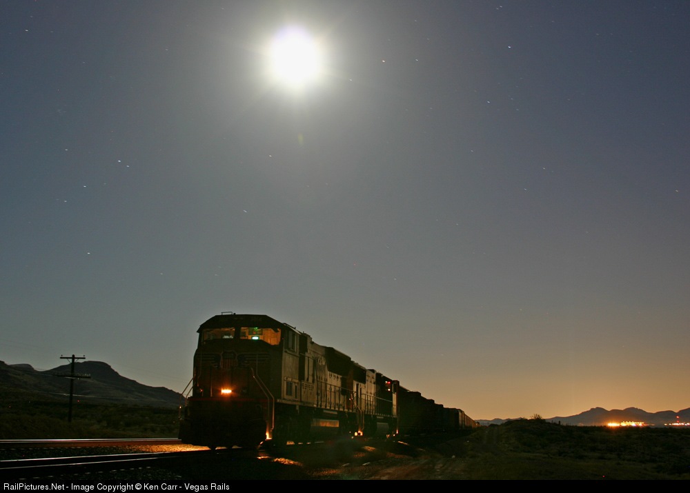 With the moon over head this crewless trash train waits out the night at Dry Lake.