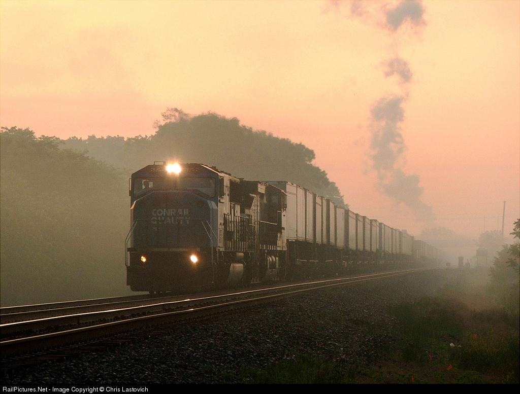 A former Conrail SD60I cruises through the AM fog making for a dramatic scene at Ogden Dunes. 5:25AM.