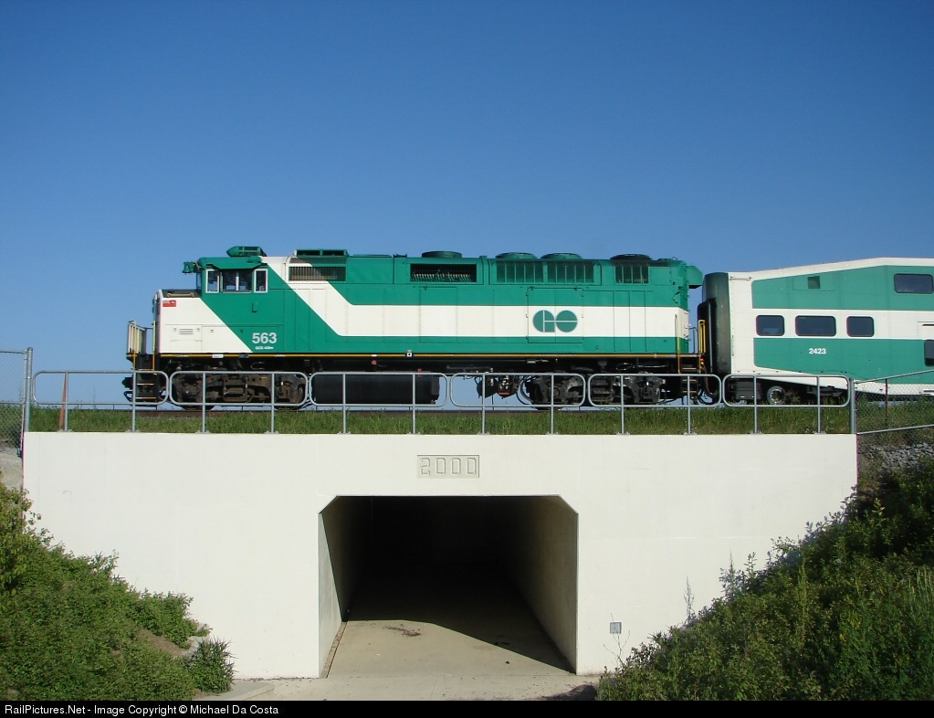RailPictures.Net Photo: GO 563 GO Transit (Greater Toronto Transit Authority) EMD F59PH at Rouge Hill, Ontario, Canada by Michael Da Costa