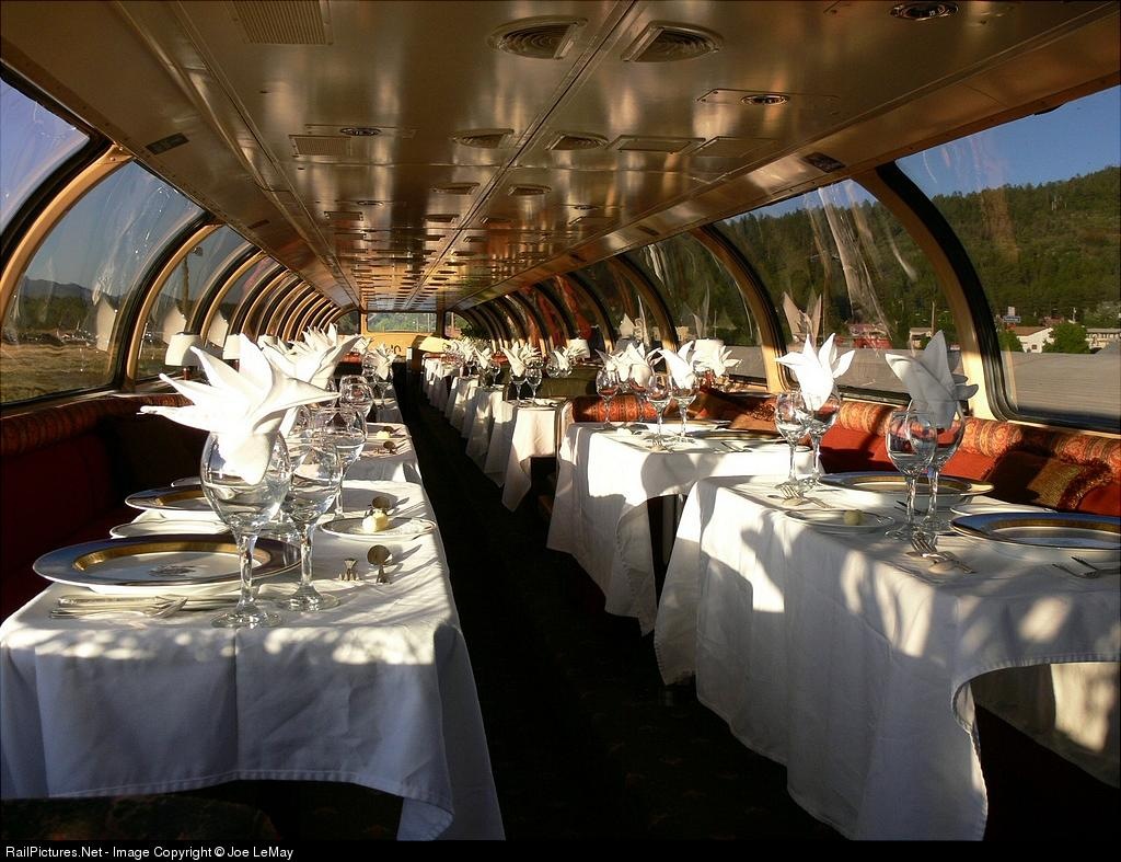 The Great Dome's tables are set for the farewell dinner to this trip's passengers. Thanks to the car attendant who let me in for this shot!