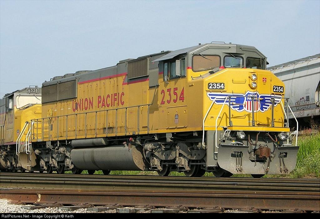 UP 2354 Sports the new scheme for UP SD 60Ms, wings, lightning bolt and yellow frame stripe