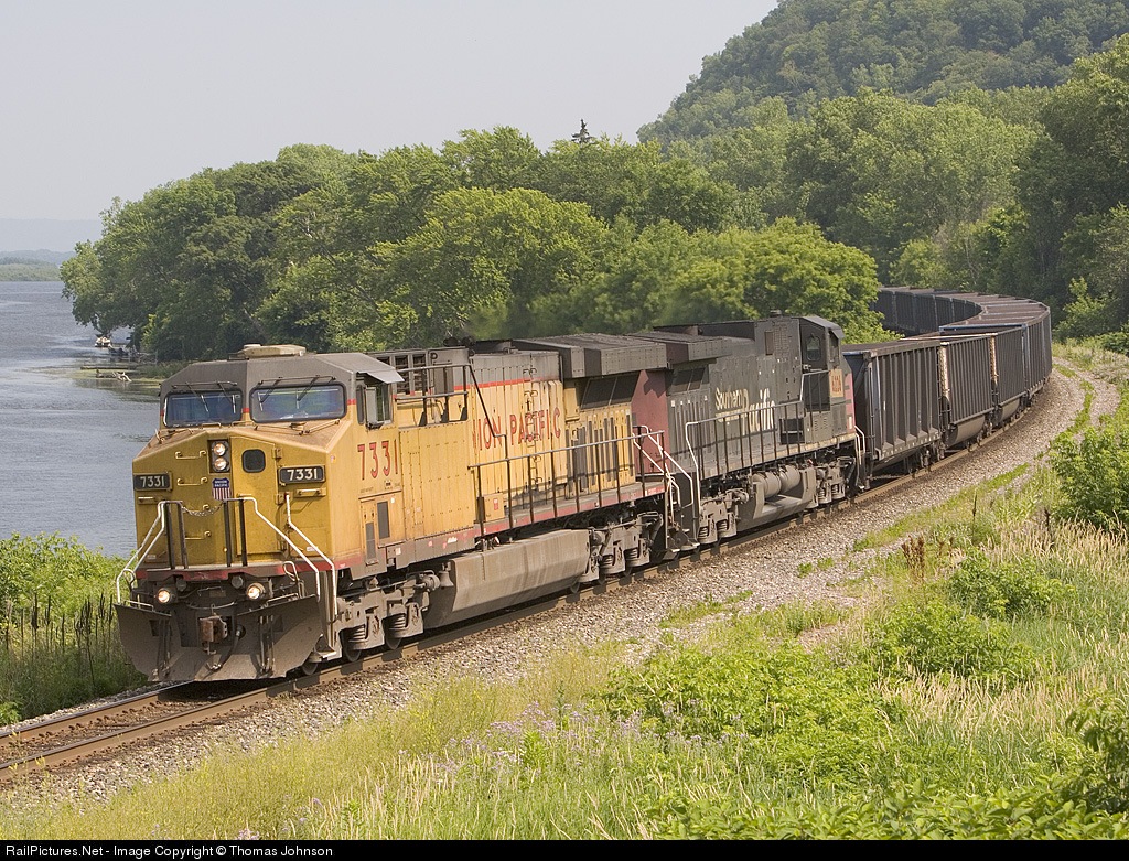 | Empty Coal Train from the Weston Power Plant near Wausau, WI heads north along the Mississippi River. (Canon EOS20D, 70-200mm f/2.8L IS USM) |