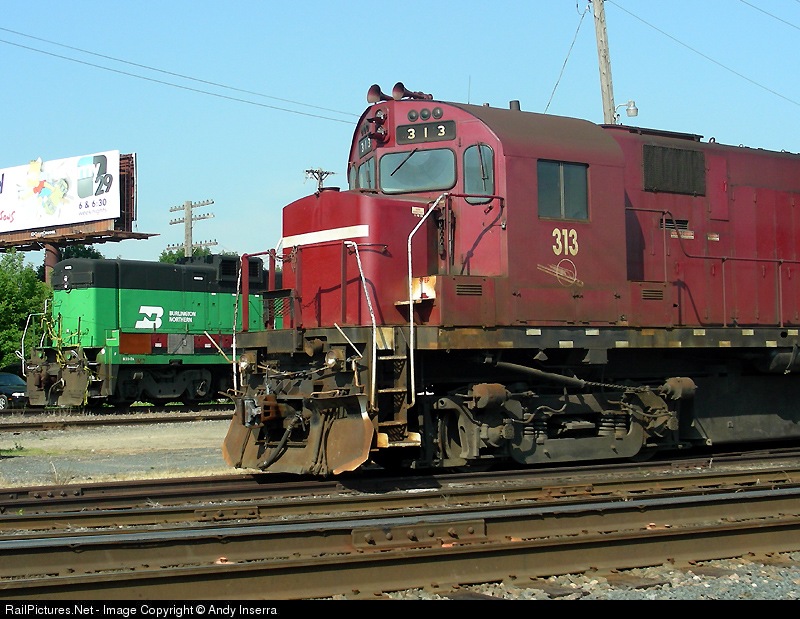 One of the few Alcos in service, MNNR 313 sits out the weekend with a former BN B30-7 B unit over in the dead line...