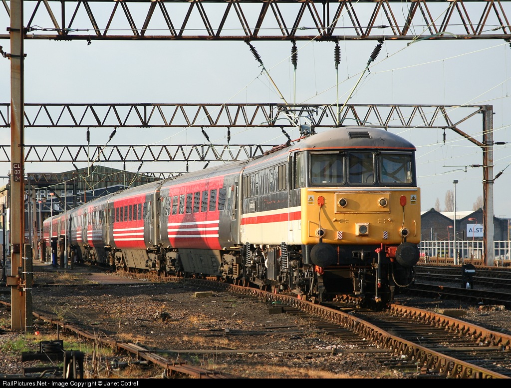 | Despite looking ready to leave with a rake of coaches, 86213 is going nowhere. As it is not registered to run on the national network it cannot leave the depot under it's own power. |