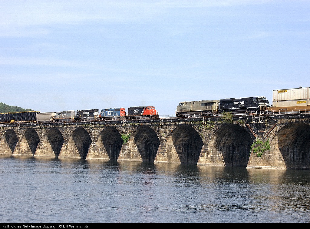 North meets south as CN runthru 30T meets intermodal 20T on the Rockville Bridge. The last GTW SD40 is in 30Ts consist.