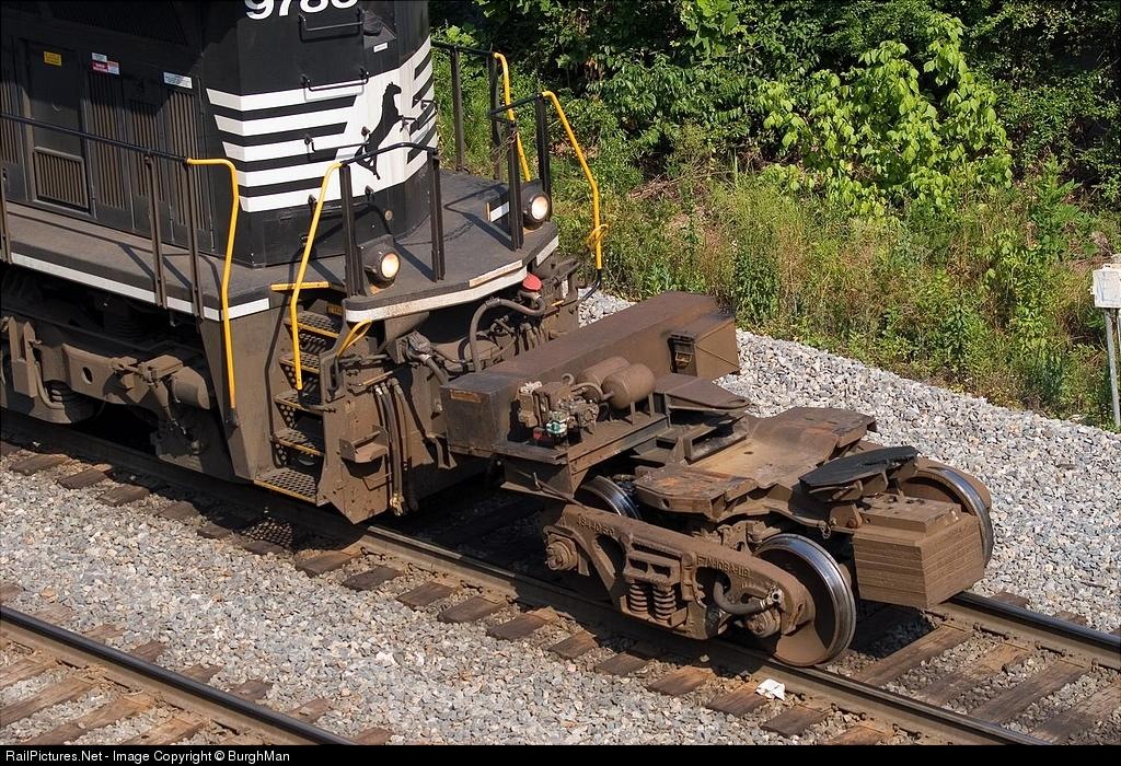 NS 9783 departed Inman Yard light for a RoadRailer train. It allowed for this rare view of the adapter bogey.