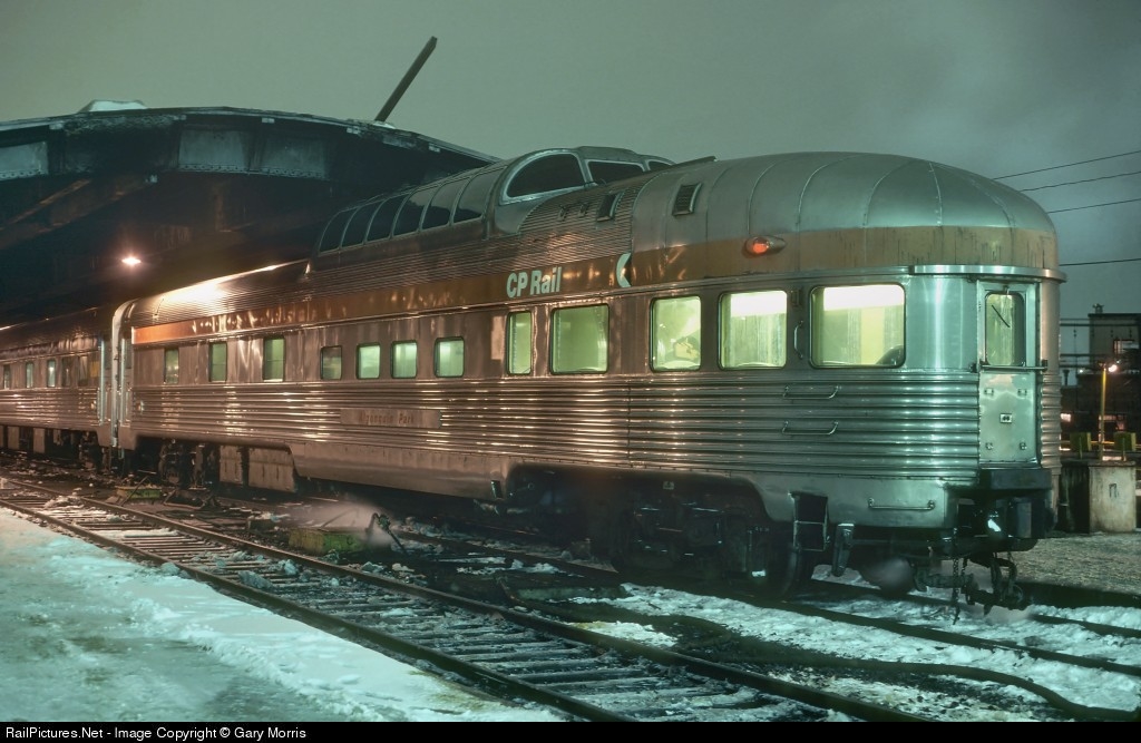 ex-CP observation Algonquin Park on the eastbound Canadian. Built in 1954 by Budd as a dome bar lounge with 3 bedrooms and a drawing room.
