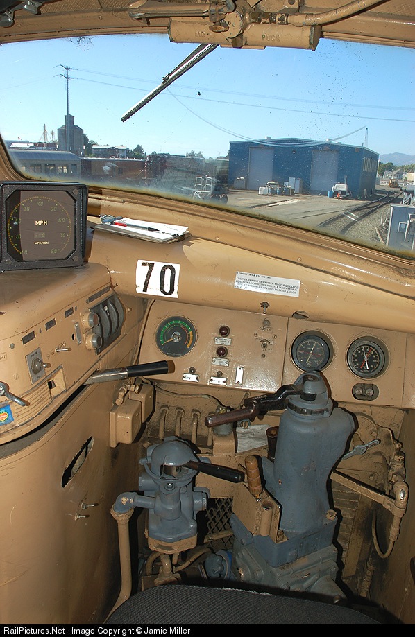 | A far cry from todays modern EMD and GE locomotives, this is the control stand of ALCO FPA4 # 70 of the NVR. |