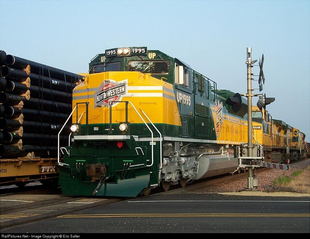 UP's new CNW heritage unit leads the last two remaining CNW units Eastbound towards Chicago.