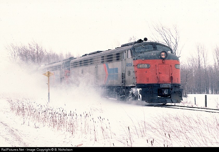 RailPictures.Net Photo: AMTK 403 Amtrak EMD E8(A) at Swanton, Vermont by B. Nicholson