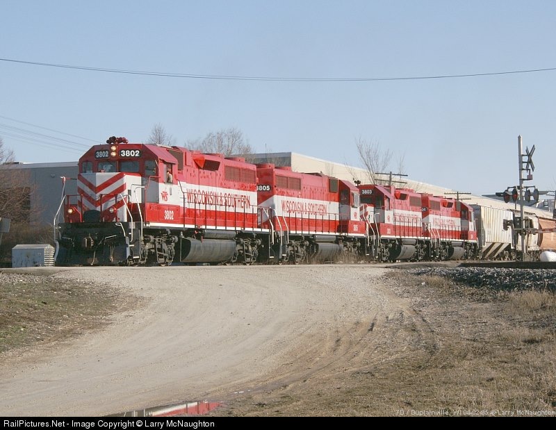 RailPictures.Net Photo: WSOR 3802 Wisconsin & Southern EMD GP38 at Pewaukee, Wisconsin by Larry McNaughton