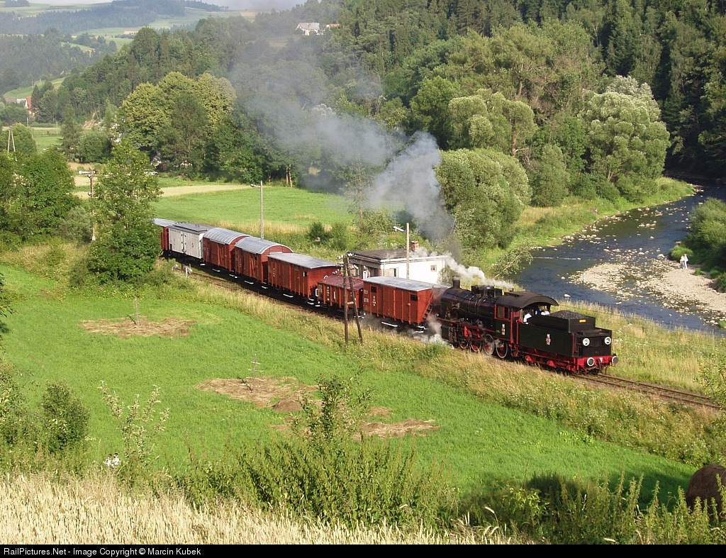 Steam Freight Locomotive Tr5 with historic special freight train leaving Rabka Zaryte.