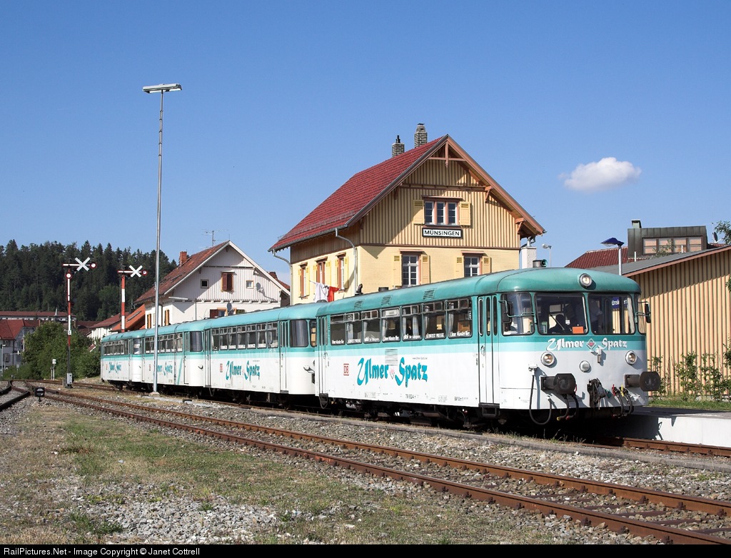 | The summer Sundays and public holidays "Ulmer Spatz" (Ulm Sparrow) waits at Münsingen before the final descent of the Schwäbische Alb (Schwabian Alps) to Ulm Hbf. |